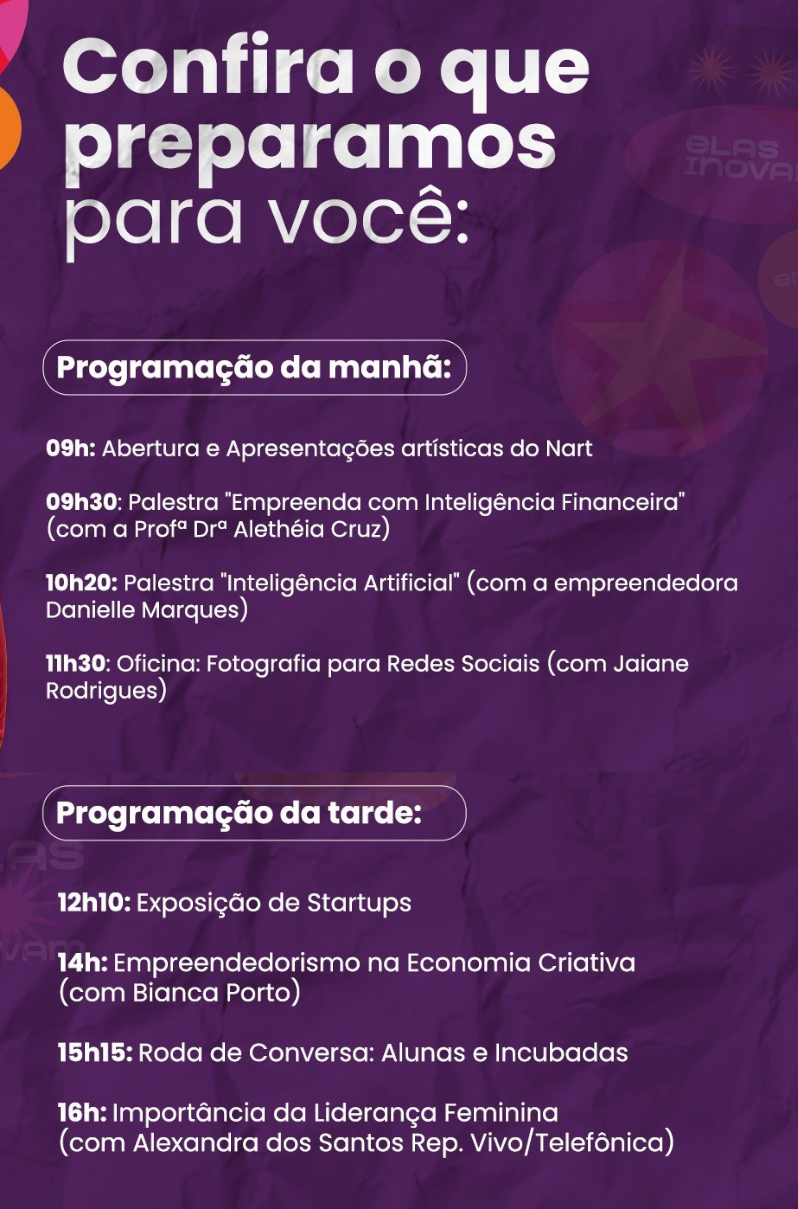 Com o propósito de estimular o empreendedorismo feminino e a inserção das mulheres no mercado de tecnologia e inovação, o “Seminário Elas Inovam” possibilita a criação de espaços seguros de aprendizado, onde as mulheres reconhecem o seu protagonismo e a potencialidade para empreender, inovar e atuar em setores de tecnologia. A projeto surge como uma ação de aprendizado, de valorização das mulheres e de luta para a mudança cultural no mercado de trabalho, como explica a idealizadora e coordenadora geral do evento, professora Dra. Alethéia Cruz.